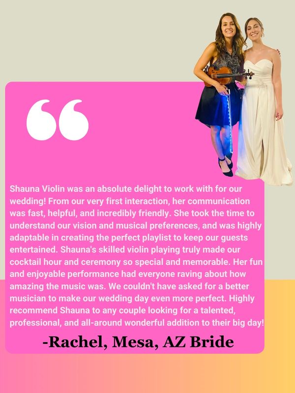 Includes: Up to 30 minutes of playing before the ceremony, during the ceremony, exit song, and up to ten minutes after the ceremony as well as a full hour of playing during cocktail hour